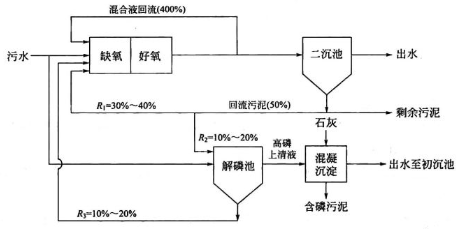 ②产生的剩余污泥中含磷量比较高,约为2.1%~7.1%,污泥回流应经过除磷池。