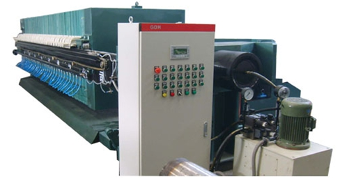 通过气动泵将污泥池中的污泥打入至压滤机内,对污泥进行压滤处理,处理后的污泥含水率大大下降,压制成泥饼。压滤机滤液回流至前置收集调节池中,继续进行处理。
