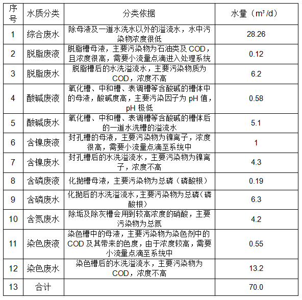 根据业主提供数据,总处理水量70m³/d,本项目为零排放项目,处理后所有水达标并回用于生产线。