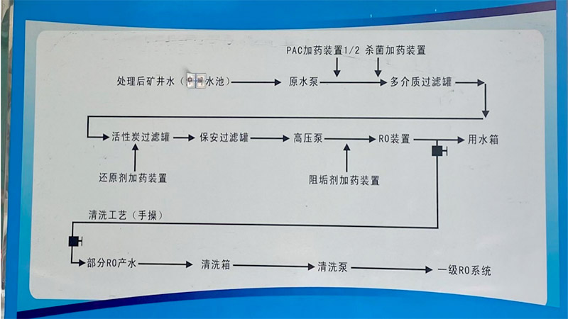 反渗透处理段采用:多介质过滤器+活性炭过滤器+RO的工艺流程;
