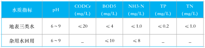 处理后的生活污水水质达到《城市污水再生利用城市杂用水水质》(GBT 18920-2020)城市杂用水回用标准。