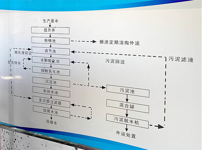 生活污水处理段采用:格栅+调节池+水解酸化池+接触氧化池+沉淀池+多介质过滤器的工艺流程。