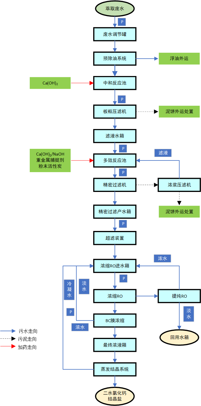 膜浓缩系统采用“超滤+预浓缩RO+提纯RO+BC超高压浓缩膜”的组合膜工艺,可大大降低蒸发结晶的投资成本和运行能耗。