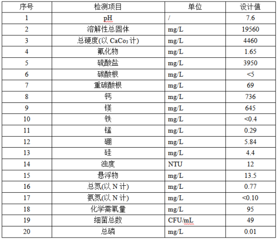 新疆某地区地下水质含盐量高、硬度高、COD略高,经过处理后,出水含盐量小于1000mg/L,电导率小于3000μs/cm,用于农田灌溉。